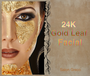 Facial includes, skin cleansing, ultrasonic exfoliation, 24K Gold serum, Oxygen infusion, 24K Gold mask, face & neck massage & skin specific moisturizing.